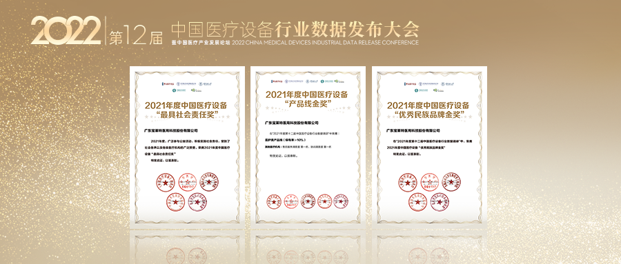 7月16日,2022年第十二屆中國(guó)醫(yī)療設(shè)備行業(yè)數(shù)據(jù)發(fā)布大會(huì)線上召開(kāi)。大會(huì)正式發(fā)布《2021年度中國(guó)醫(yī)療設(shè)備行業(yè)數(shù)據(jù)調(diào)研報(bào)告》。寶萊特憑借在行業(yè)內(nèi)的突出表現(xiàn)及客戶認(rèn)可,榮膺監(jiān)護(hù)類 “產(chǎn)品線金獎(jiǎng)”、 “優(yōu)秀民族品牌獎(jiǎng)”以及“”最具社會(huì)責(zé)任獎(jiǎng)”三大獎(jiǎng)項(xiàng)。