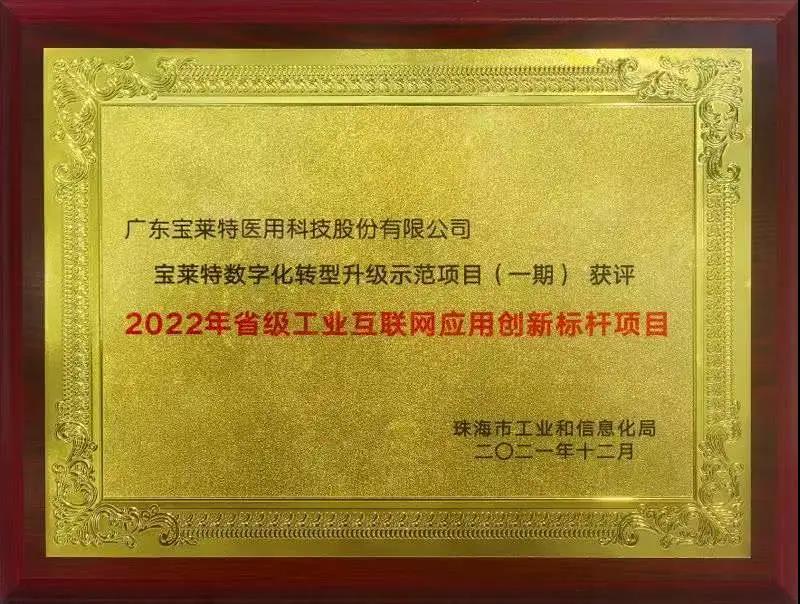 12月7日,2021年珠海市“5G 揚帆 聯通未來”5G+工業(yè)互聯網大會隆重召開。寶萊特數字化轉型升級示范項目(一期)榮評 “2022年省級工業(yè)互聯網應用創(chuàng)新標桿項目”。