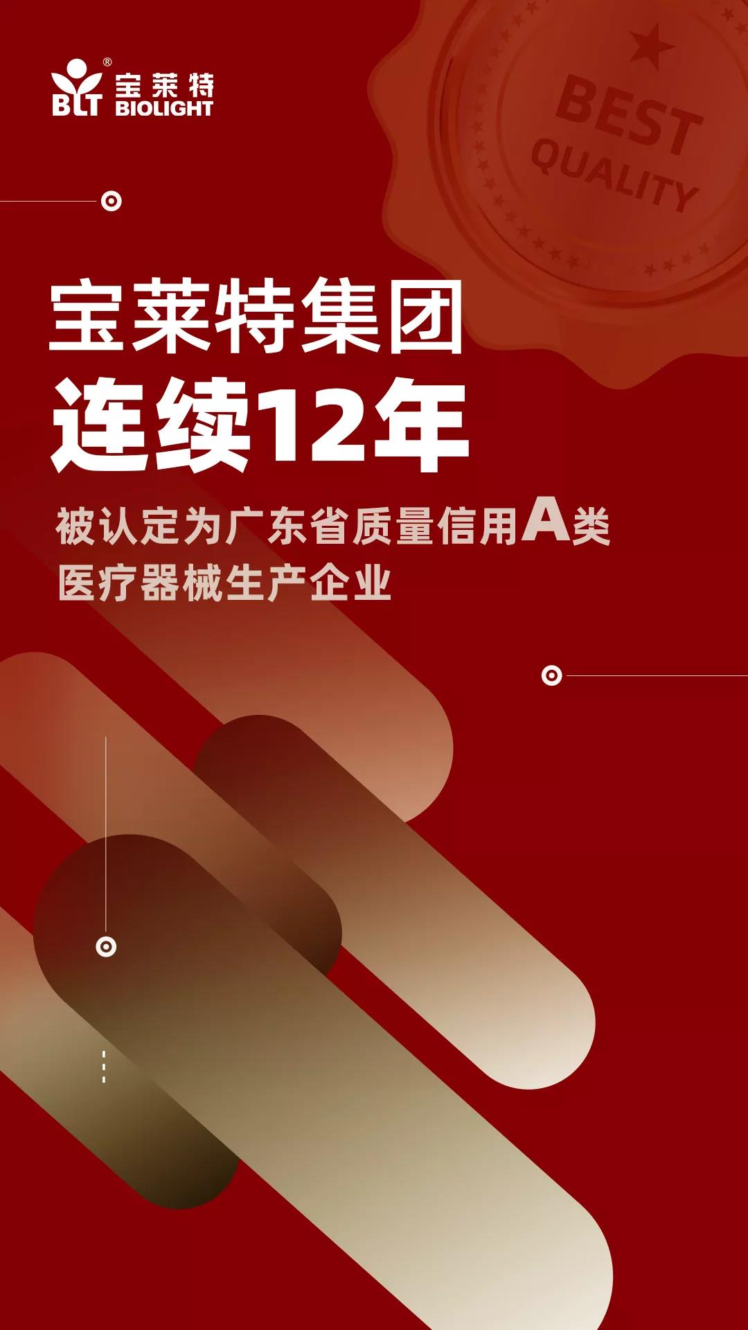 寶萊特連續十二年被認定為質量信用A類醫療器械生產企業