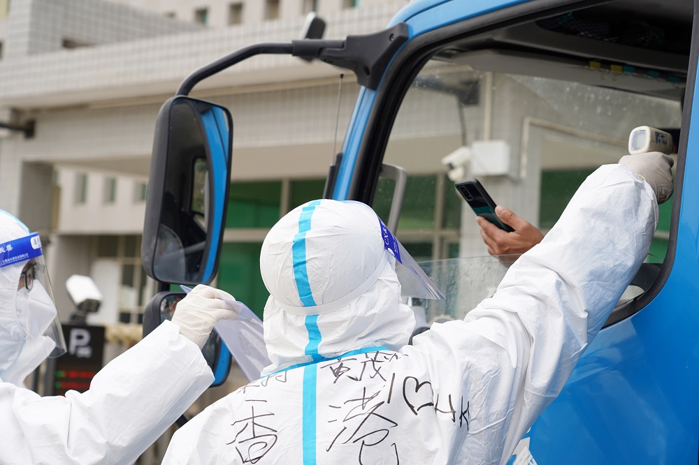 2月21日下午,一臺運載著寶萊特集團醫療設備的貨車經港珠澳大橋珠海公路口岸快速通關,馳援香港抗疫。
