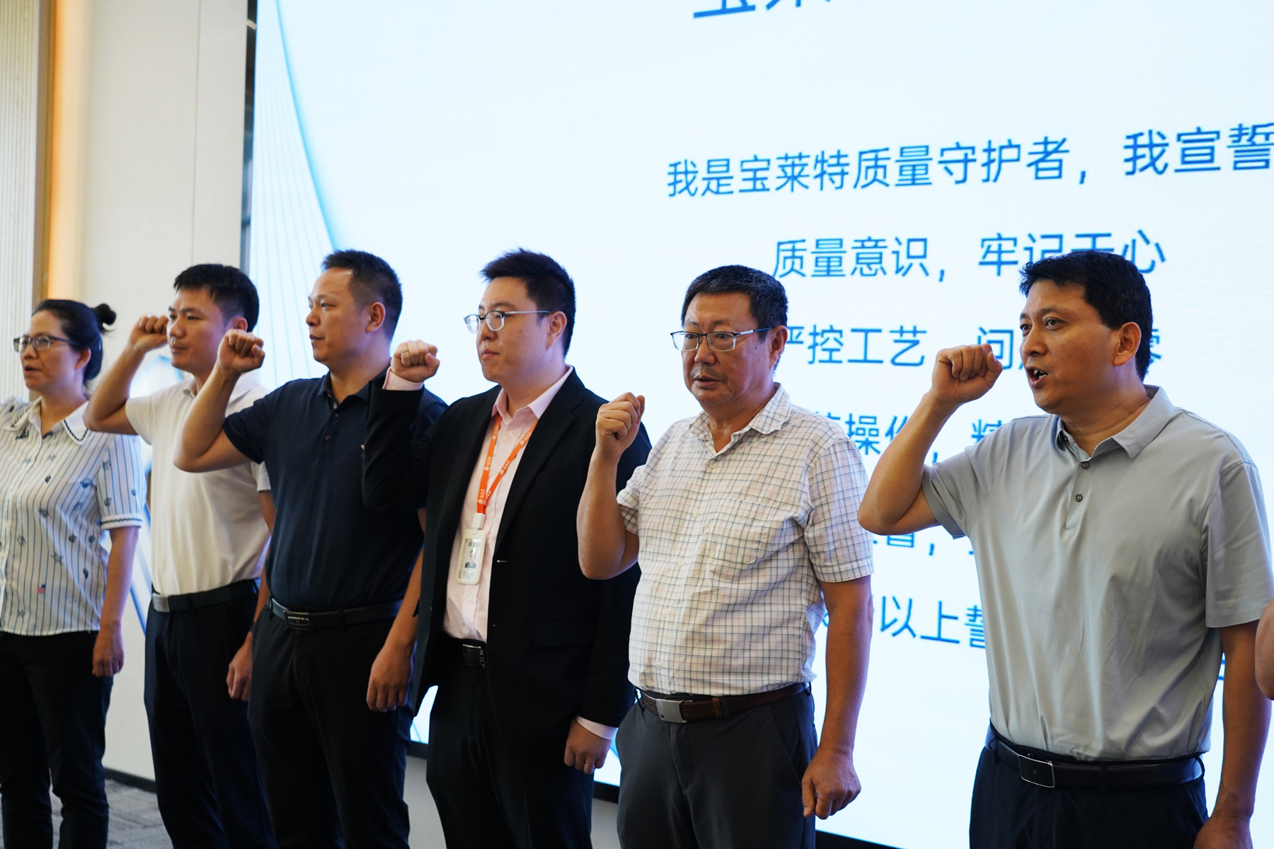 在董事長擲地有聲的號召后,大會迎來了激動人心的全員質量誓言宣讀環(huán)節(jié)。全體與會人員肅立,在領誓人的帶領下,以鏗鏘有力的聲音莊嚴承諾恪守質量準則、履行質量責任,將“質量即生命”的信條內化于心、外化于行,現場氣氛莊嚴肅穆,彰顯了寶萊特人捍衛(wèi)質量的堅定決心。這份誓言不僅響徹會場,更將成為整個質量月乃至未來工作中的行動指南。