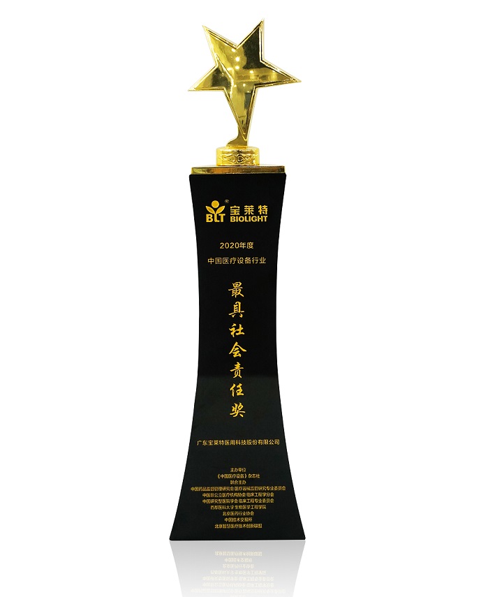 寶萊特品牌建立的初心在于“貢獻”,董事長燕金元先生說過:“把寶萊特做強做大,第一要素是要有創造社會價值的信念!”在2020年全球抗疫中,寶萊特集團提前復工復產,及時為前線輸送監護儀和血液透析設備,并榮獲中央赴湖北等疫情嚴重地區指導組、國家衛生健康委員會、國務院等多封感謝信。因此,《中國醫療設備》雜志社在此次大會上對寶萊特集團頒發了“2020年度中國醫療設備最具社會責任獎”,這份殊榮,彰顯了寶萊特在特殊時期勇于擔當的企業精神。
