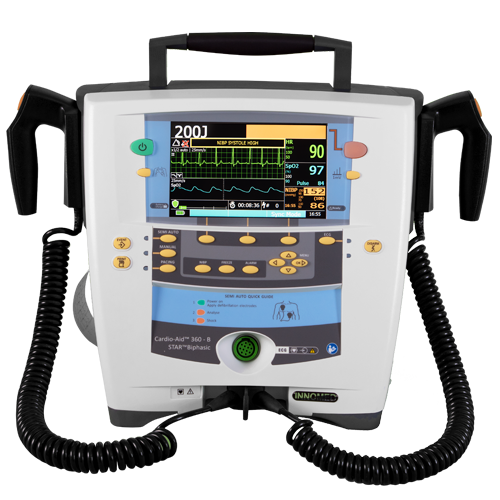 適用范圍:該產品可為年齡大于1歲的病人提供手動同步除顫、手動異步除顫、半自動異步除顫、體外起搏治療,同時可以提供心電/心率、脈搏血氧飽和度、脈搏率、無創血壓和呼末二氧化碳監護,該產品在醫院和臨床環境下使用,半自動異步除顫治療可由受過訓練的非專業人員或執業醫師操作,但手動除顫、體外起搏治療應由有經驗的執業醫師操作。手動同步除顫治療用于治療心房顫動以及心臟復律;手動異步體外除顫用于治療室性心動過速和心室纖顫;半自動異步除顫用于終止病人的心室纖維顫動和心動過速癥狀。體外起搏用于治療心動過緩。無創血壓監護可用于成人、小兒和新生兒。呼末二氧化碳監護可進行呼吸暫停、EtCO2、呼吸率監護、適用于監護在麻醉/恢復期間、重癥監護室、急診/急救轉運或呼吸困難的插管和非插管成人、小兒和新生兒病人。