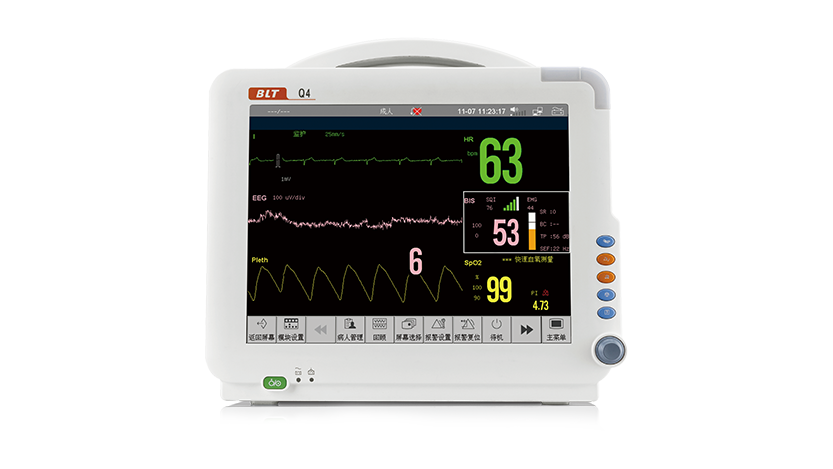適用范圍:該產品在醫院的重癥監護病房、冠心病監護病房、新生兒監護室、手術室使用,適用于對成人、小兒、新生兒的心電(含ST段及心律失常分析)、心率、呼吸、脈搏血氧飽和度、脈搏率、無創血壓、有創血壓、二氧化碳、氧指數、總血紅蛋白(SpHb)、碳氧血紅蛋白(SpC0)高鐵血紅蛋白(SpMet)進行監護,并對監護的信息進行顯示、回顧、存儲和打印。其中,ST段和心律失常分析、雙頻指數、總血紅蛋白(SpHb)、碳氧血紅蛋白(SpC0)和高鐵血紅蛋白(SpMet)監測功能不適用于新生兒。該產品應由專業臨床醫生或在專業臨床醫生的指導下使用。使用該產品的人員應接受充分的培訓。任何沒有授權的人員或者沒有經過培訓的人員不得進行任何操作。