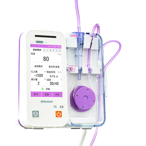 結(jié)構(gòu)及組成:由輸入及顯示裝置、控制系統(tǒng)、電機驅(qū)動單元、蠕動機構(gòu)、檢測裝置、報警裝置、泵外殼、電池、加溫器(選配)及軟件組件組成。