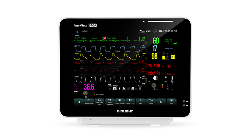 該產品適用于對成人、小兒、新生兒的心電(含ST段測量、QT/QTC測量及心律失常分析)、心率、呼吸、脈搏血氧飽和度、脈率、體溫、無創血壓、輸液滴速(不包括鎮痛藥、化療藥物、胰島素等的輸液)、二氧化碳、有創血壓和有創心輸出量(僅適用于成人患者進行監測,并對監測的信息進行顯示、回顧、存儲和打印。S10A、S7A不支持二氧化碳、有創血壓和有創心輸出量。該產品預期在醫療機構使用,可用于醫院的多種病房,如重癥監護病房、冠心病監護病房、新生兒監護室、手術室、普通病房,為醫護人員提供病人生理信息。